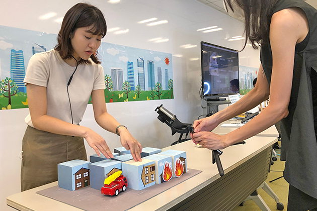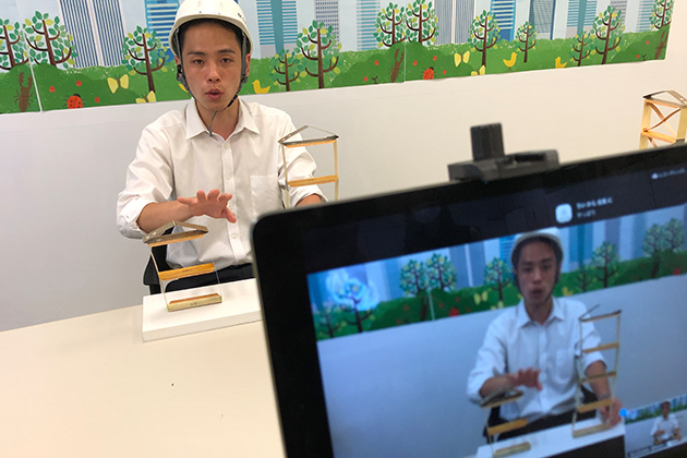 安全・安心な街のヒミツを学びました。もしも地震が起きたらどんな被害が起きてしまうのか?そしてどんな街だったら被害がおさえられるのか?チャット機能を使って意見を出し合い、みんなで考えました。また、オリジナル模型を一緒に見て、安全・安心な街のヒミツを探りました。