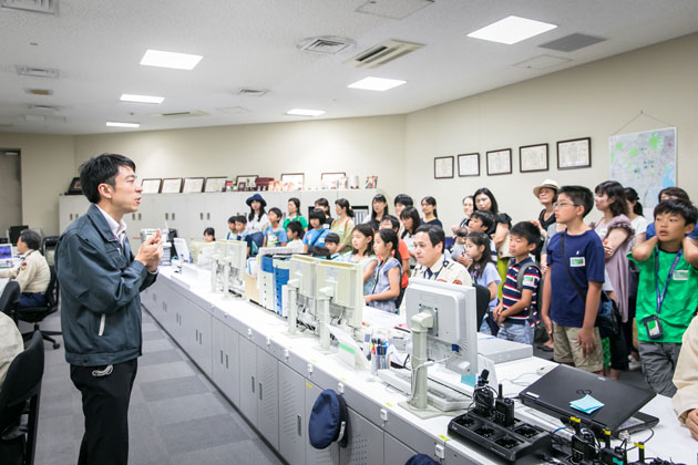 帰宅困難者や関係者のために10万食の食糧やアルミ毛布・マットレスなどを保管する備蓄倉庫と、毎日街を見守る防災センターを見学し、六本木ヒルズのソフト面の安全・安心のヒミツに迫りました。