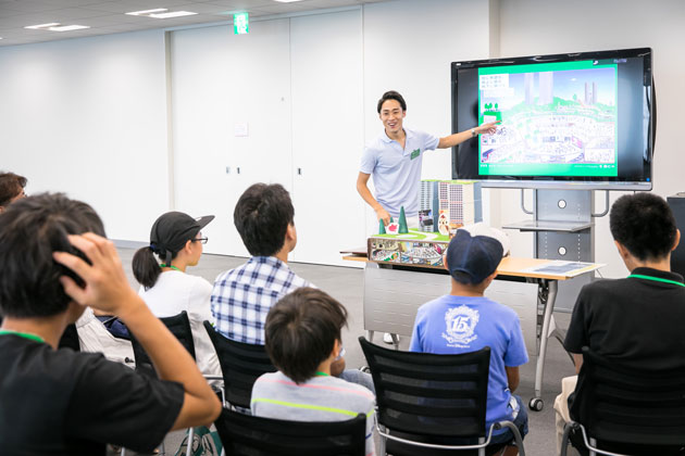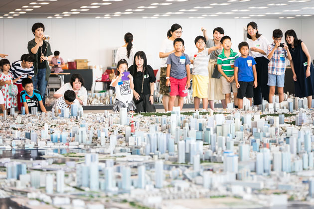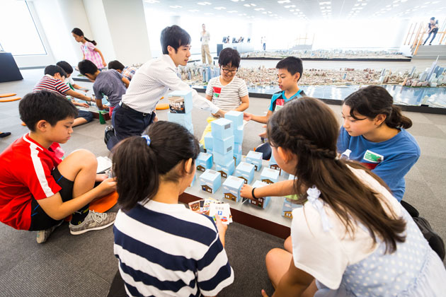六本木ヒルズを舞台に、街づくりについて考えるツアー。鳥の目線で都市を観察し、暮らしやすい街、楽しい街に必要なことを考えました。また、2020年東京オリンピック・パラリンピックを見据えて、小さな模型を使ってみんなでオリジナルの街をつくるワークショップも実施しました。