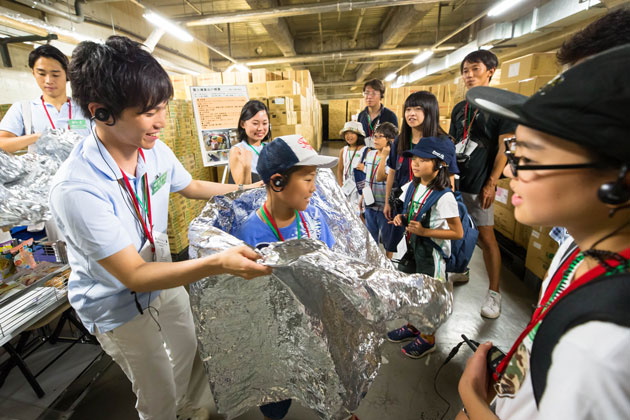 10万食分の水と非常食が保管された、民間企業の施設としては最大規模の備蓄倉庫を見学し、「逃げ込める街」六本木ヒルズの震災に対する取り組みについて学びました。備蓄されている食糧の多さに、参加者は驚きの声をこぼしていました。