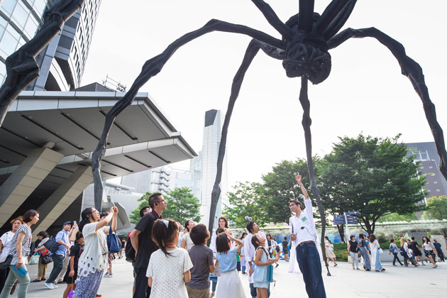 66プラザにあるクモのオブジェ「ママン」や、けやき坂にあるベンチなど、六本木ヒルズにはだれでも触ったり使ったりできるアート作品やストリートファニチャーがたくさんあります。実際にアート作品に触れることで、アートの新しい楽しみ方を体験しました。