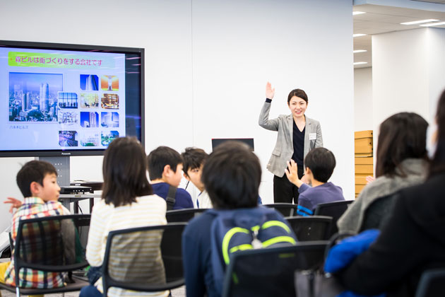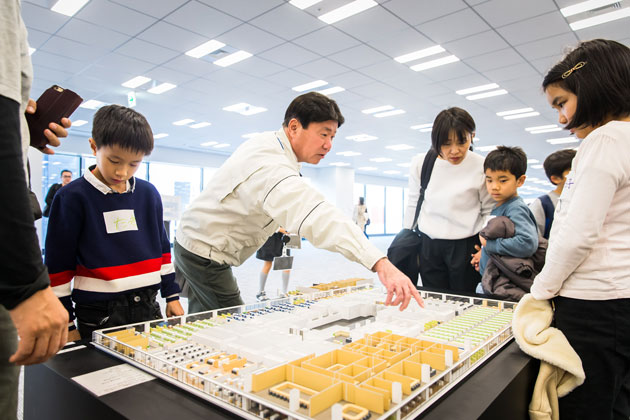 森ビルが街づくりをするうえで大切にしている「安全」「環境」「文化」についてレクチャーしたほか、模型を使ってGINZA SIXができる前と後を比べながら、2つの街区を一体開発したGINZA SIXの開発手法を説明しました。