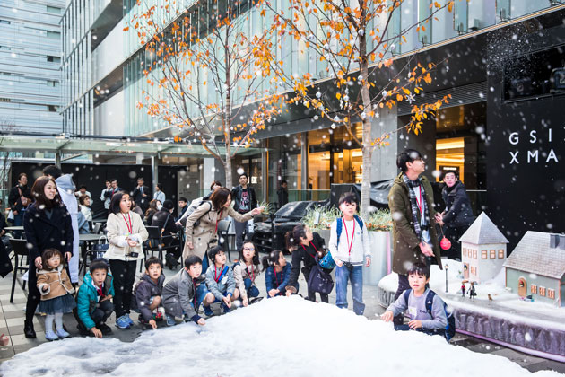 最後はGINZA SIXのクリスマスイベント「Snow Dome City」に参加。本物の雪でつくられたスノーマンと写真を撮ったり、積もった雪を触って遊んだり、東京ではなかなか体験できないホワイトクリスマスに感動の声があがりました!
